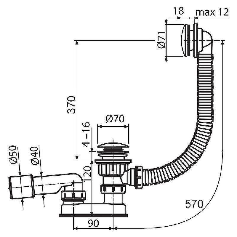 Слив-перелив для ванны Ravak click-clack Черный (X01746)