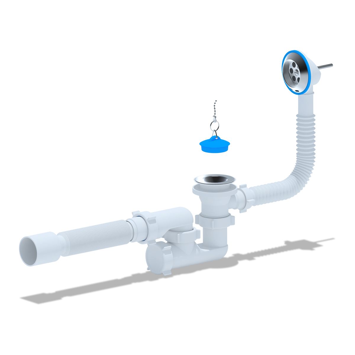 —Слив-перелив Ани Пласт для ванны, регулируемый с выпуском 1 1/2"*40, с переливом, с гибкой трубой 40/50 (E255)