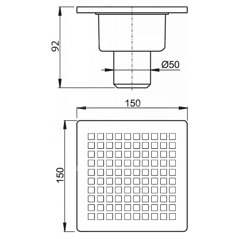 —Душевой трап Loranto LINE 150x150 мм прямой сток, решетка из нержавеющей, гидрозатвор сухой (3012.0A050K.015.1)