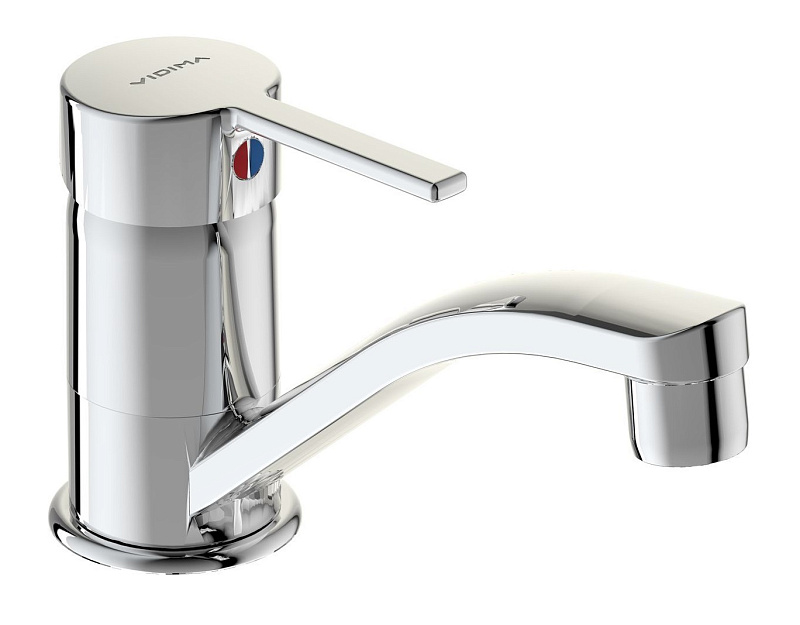 VIDIMA LOGIK Однорукоятковый смеситель для умывальника, система монтажа EASY-FIX (облегченный монтаж), трубчатый поворотный излив 143 мм, угол поворота 360˚, аэратор Perlator, керамический картридж 35 мм, металлическая рукоятка с индикаторами горячей / холодной воды, гибкая подводка G1/2", шланги стандартной длины 400 мм