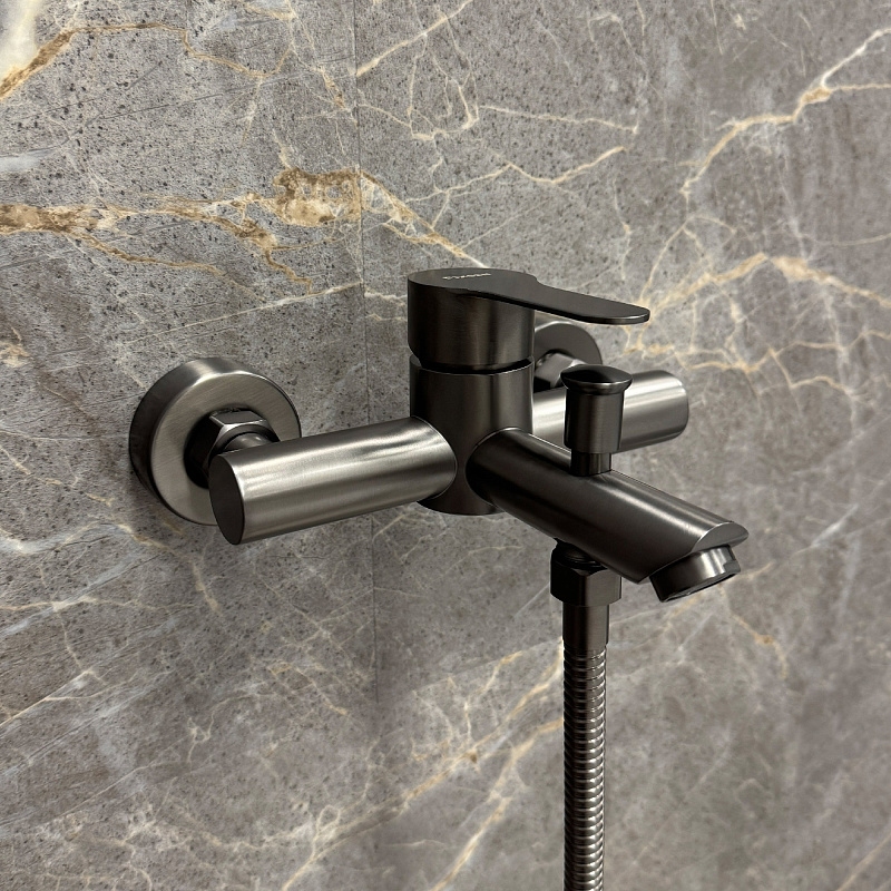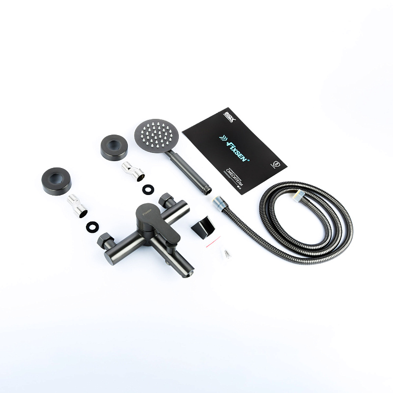 —Смеситель для ванны Fixen NORDIC однорычажный, керамический картридж, с душевым набором, графит (FX-8803F)