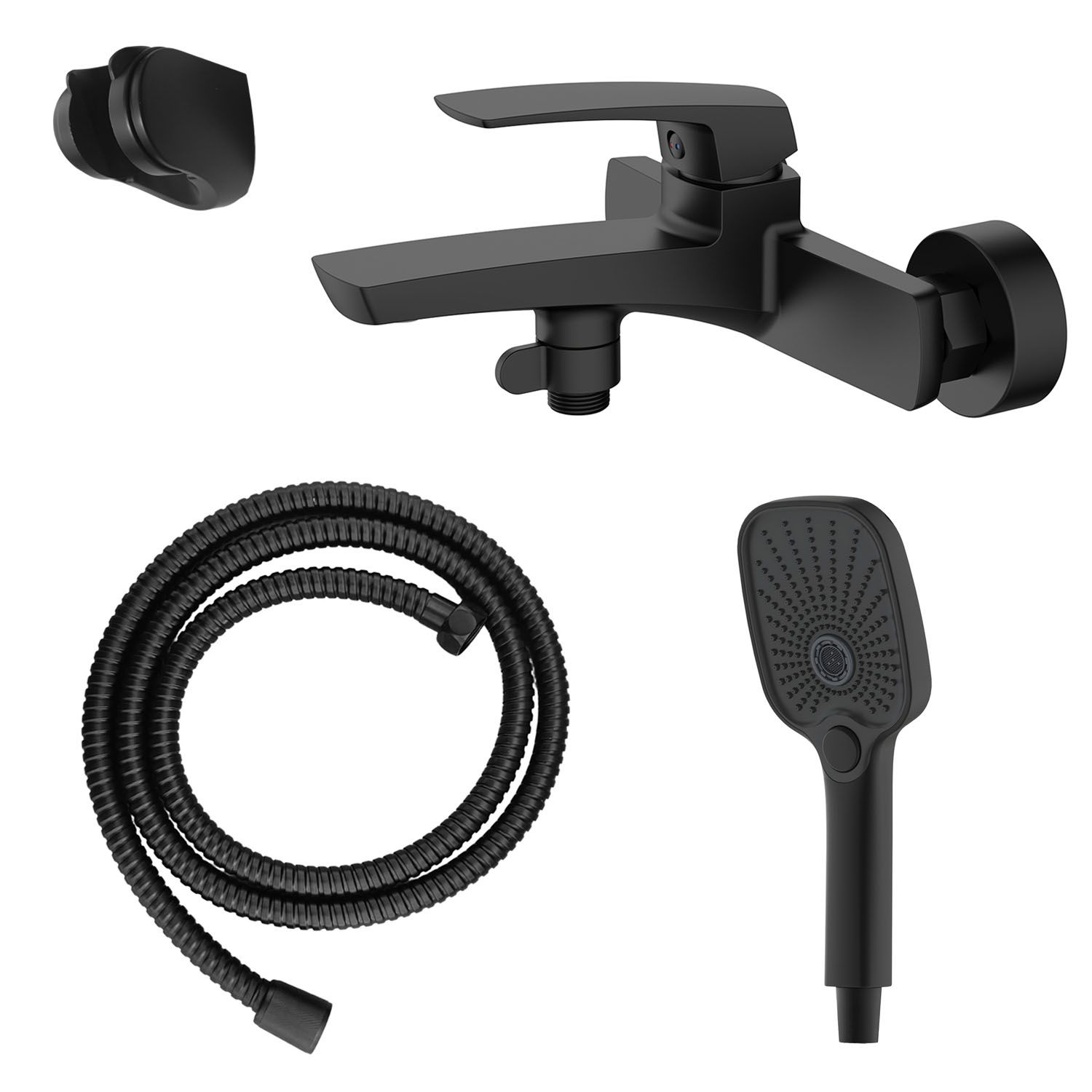 —Смеситель для ванны Azario Conda с ручным душем, керамический картридж, шланг 150 см, черный матовый (AZ-K3011B)