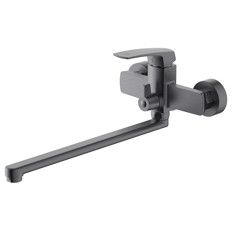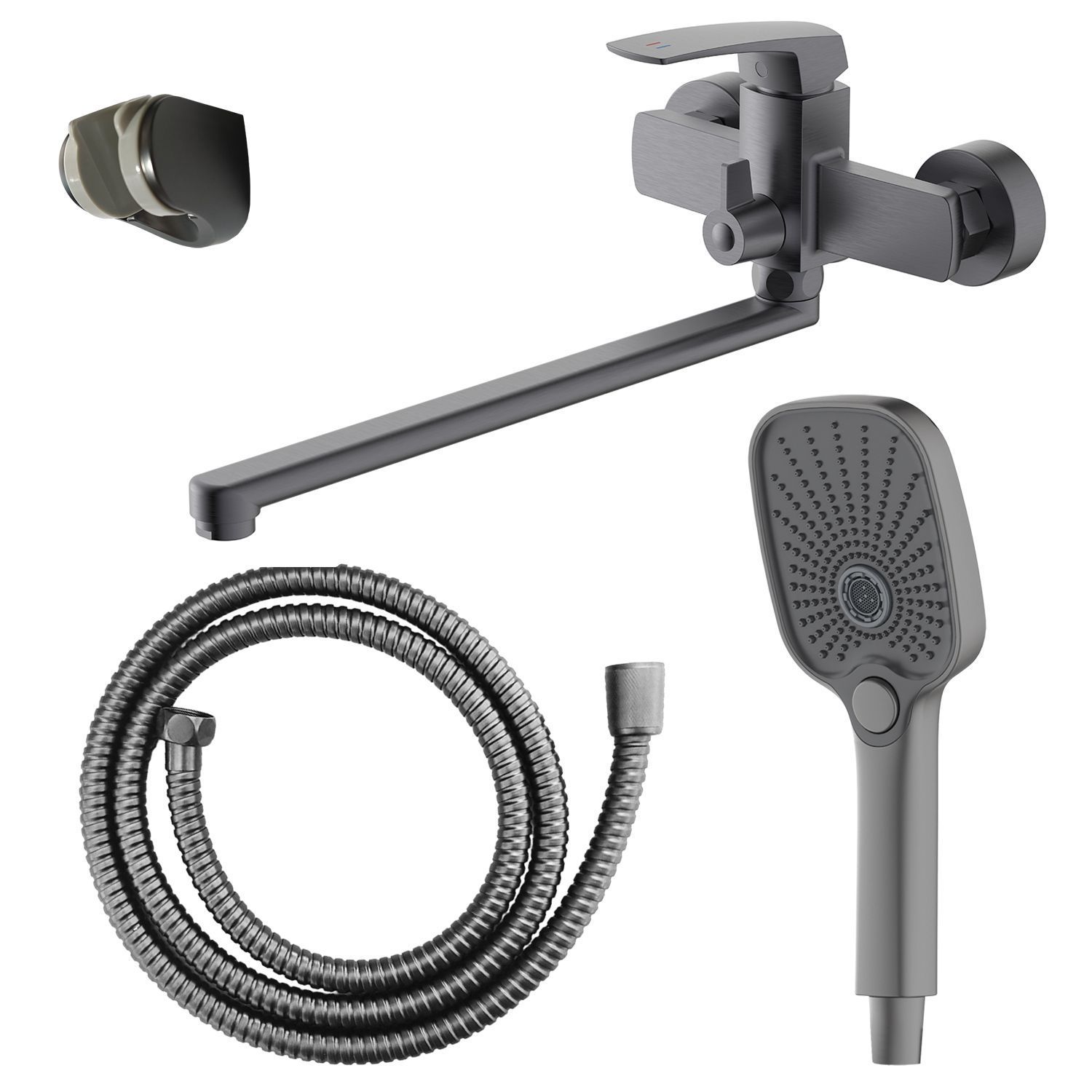 —Смеситель для ванны Azario Conda керамический картридж, длинный излив, с ручным душем, шланг 150 см, графит (AZ-K1711GR)