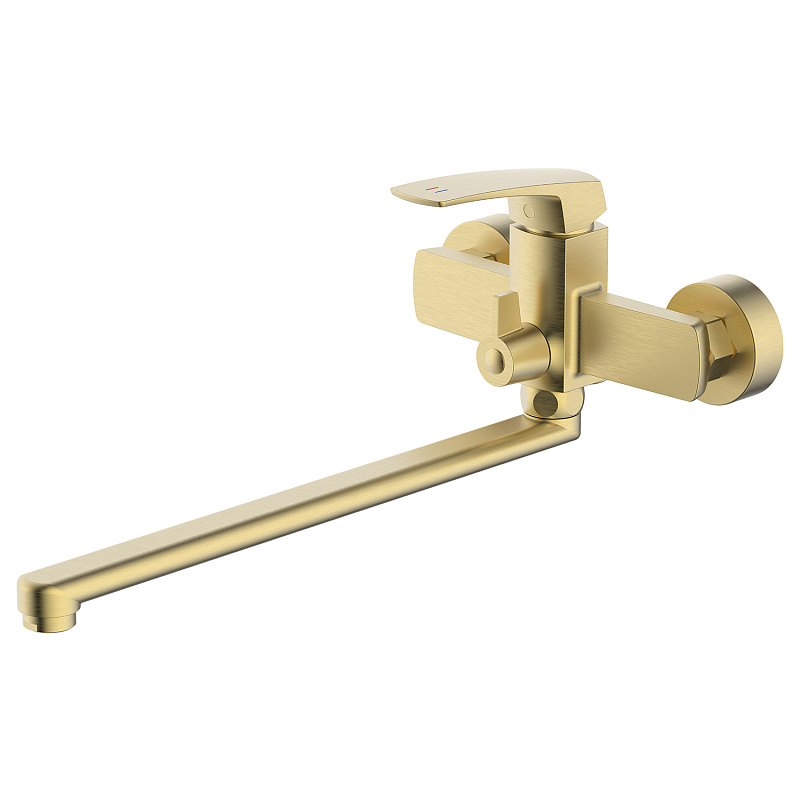 Смеситель для ванны Azario Conda керамический картридж, длинный излив, с ручным душем, шланг 150 см, золото матовое (AZ-K1711MG)