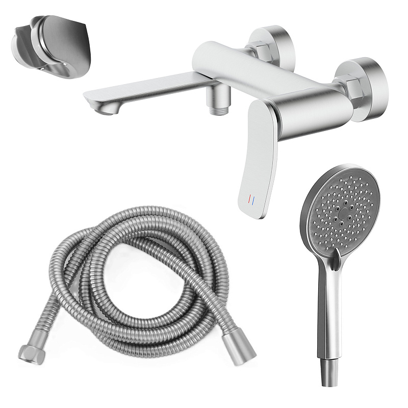 —Смеситель для ванны Azario Escaro с ручным душем, керамический картридж, шланг 150 см, сатин (AZ-K3074BN)