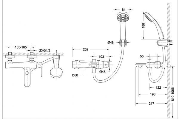 Размер ручного душа,мм