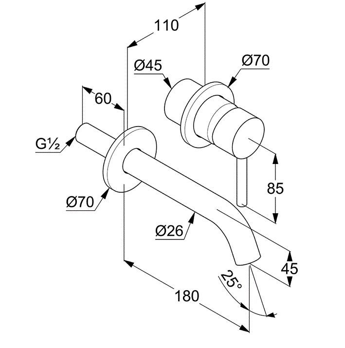 —Смеситель для раковины KLUDI BOZZ WHITE настенный встраиваемый внешняя часть, белый матовый (382445376)
