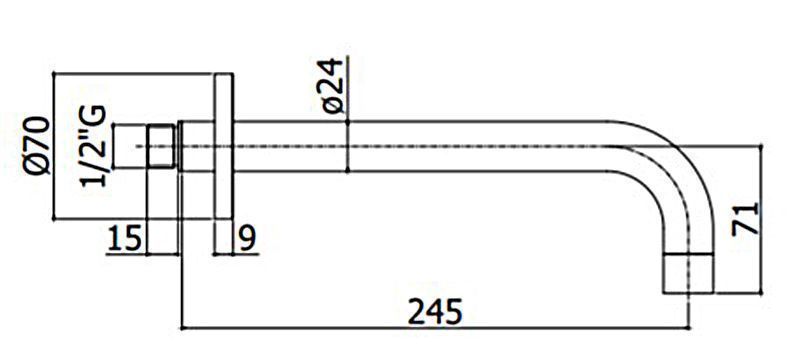 Излив из стены Paffoni LIGHT d.24, длина 245 мм., черный хром (ZBOC141CR)