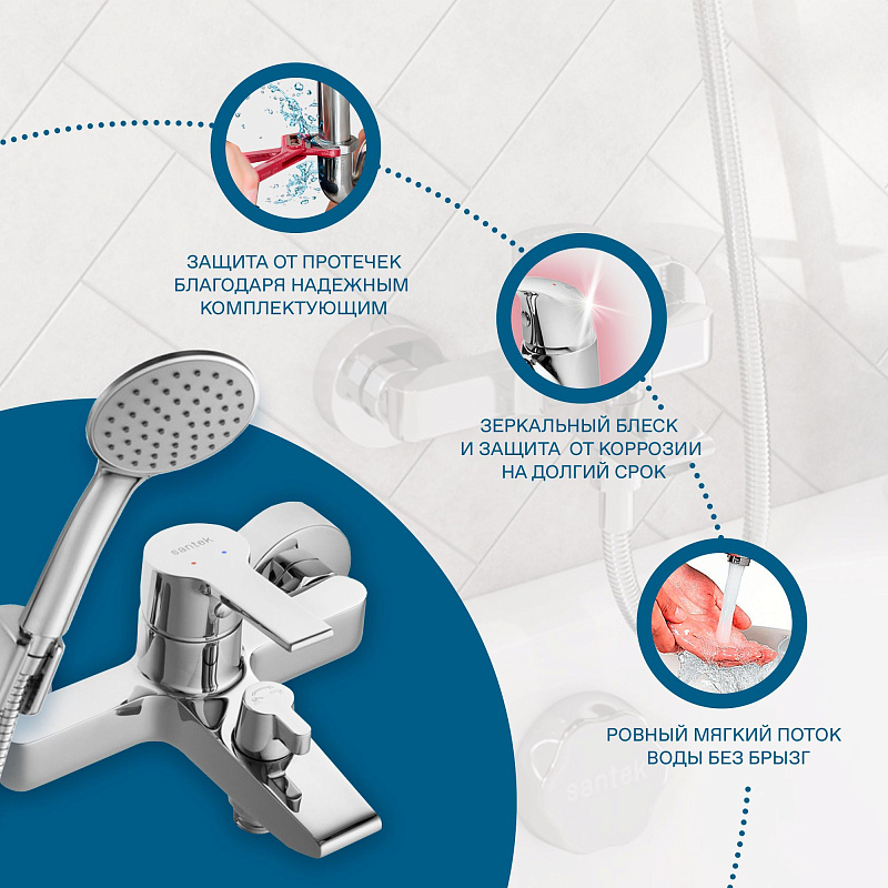 Santek Найра Смеситель однорычажный для ванны-душа, хром