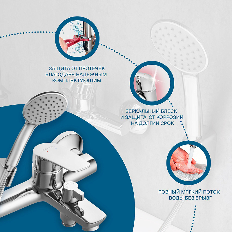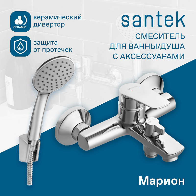 Santek Марион Смеситель однорычажный для ванны-душа, хром