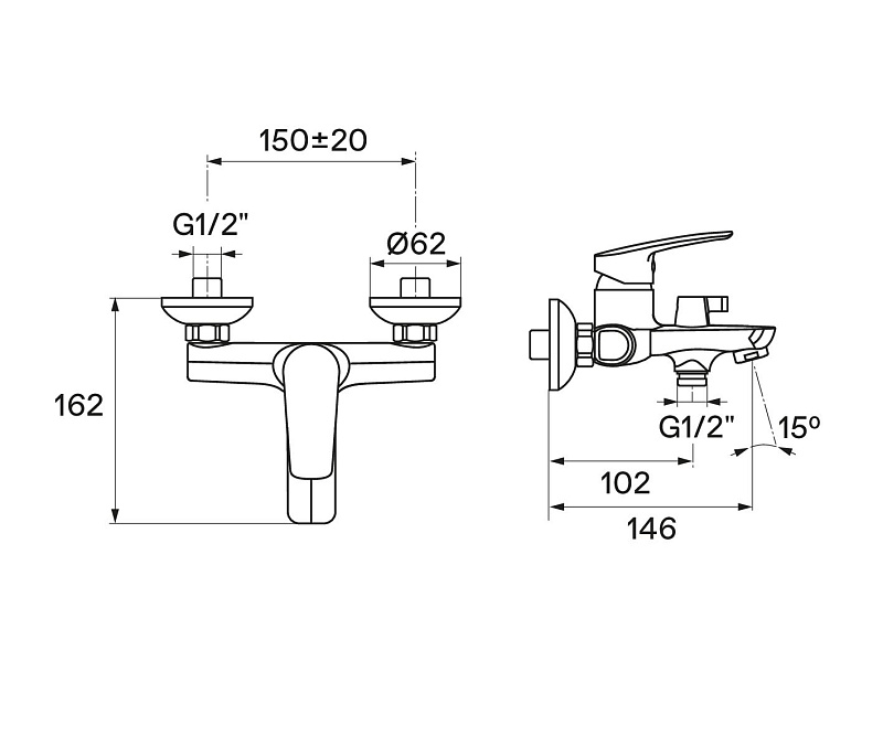 - шланг 1.5 м, настенный держатель;