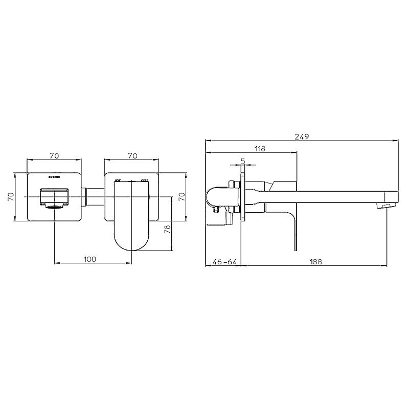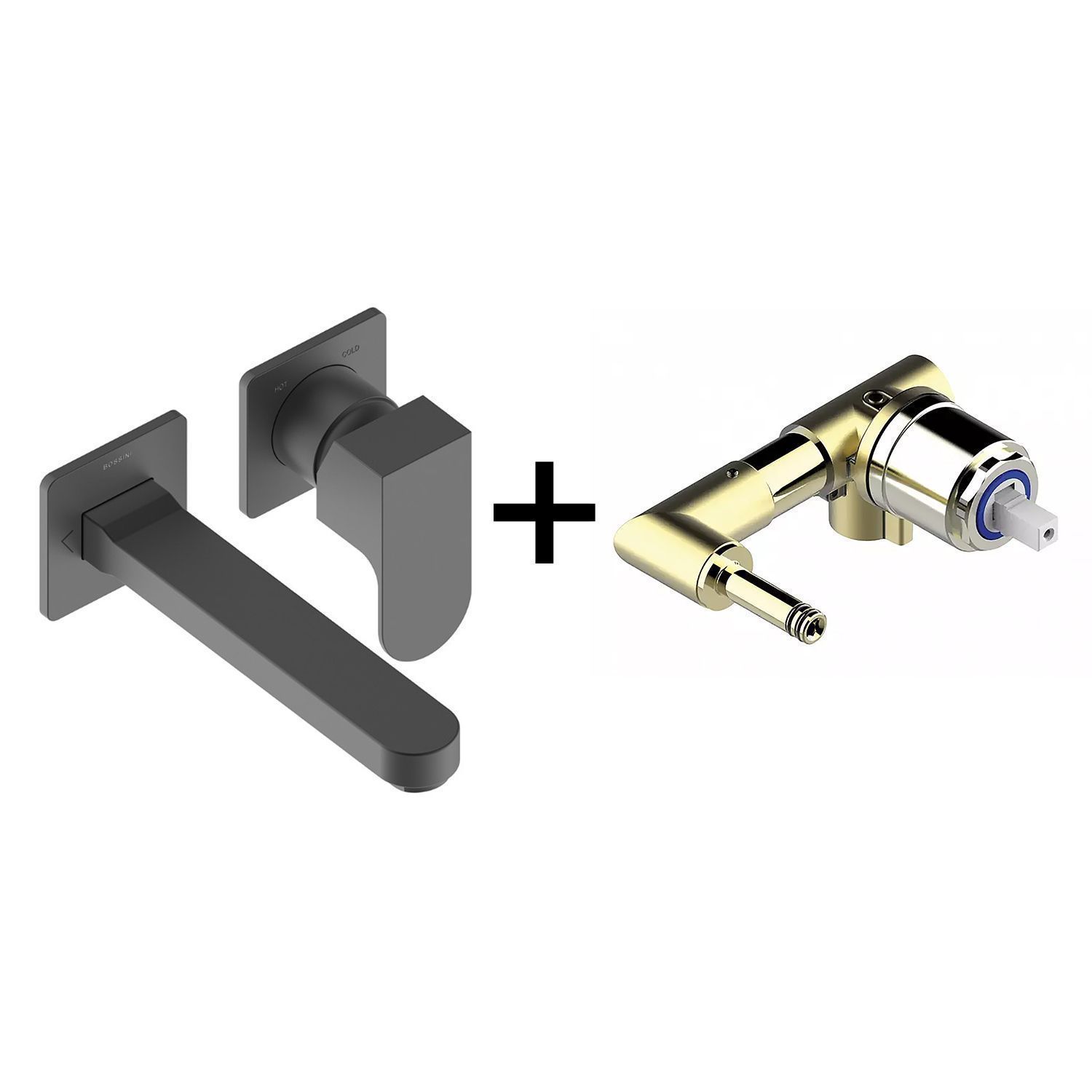 —Комплект Bossini TEO Смеситель для раковины, настенный, встраиваемый, с изливом 18.5 см, черный матовый + Встраиваемая часть однорычажного смесителя (Z00732.073+Z00801)