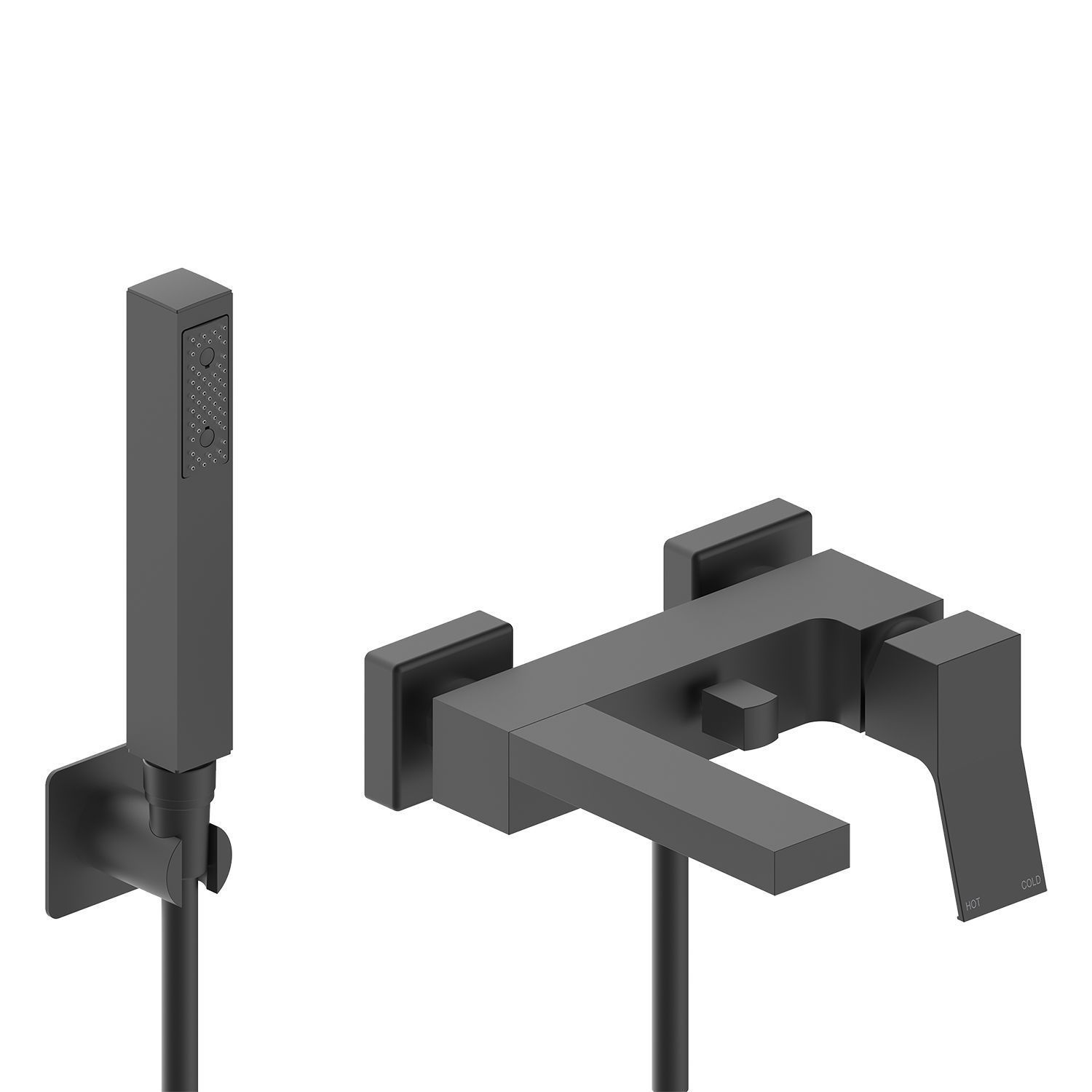 —Смеситель для ванны Bossini AKI лейка Cube, керамический картридж, шланг 125 см., черный матовый (Z00726.073)