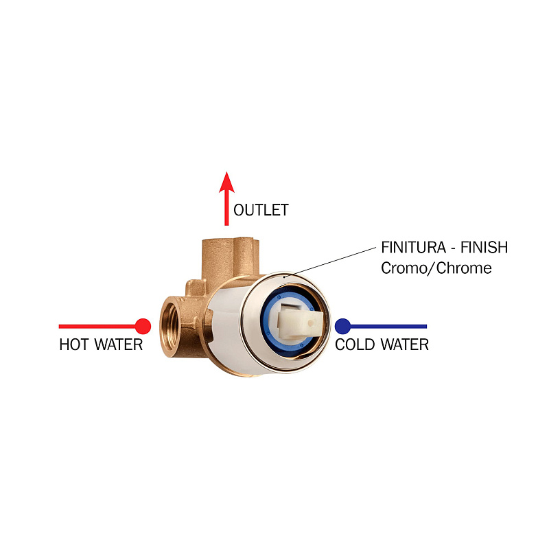 Комплект Bossini CUBE Смеситель для душа на 1 выход, хром + Встраиваемая часть смесителя с девиатором 1 направления 1/2” (Z00064.030+Z00007)