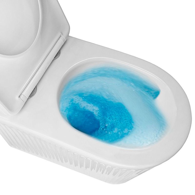Размеры унитаза составляют 520×365×346 мм, что позволяет компактно разместить его в помещении любого размера. Инновационная система смыва «Скрытое Торнадо» гарантирует эффективное и бесшумное смывание, обеспечивая тщательную очистку чаши с минимальным расходом воды.