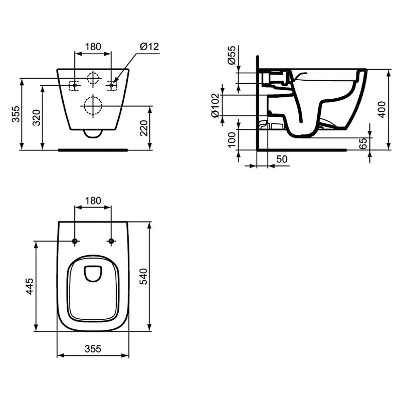 Унитаз подвесной Ideal Standard I Life B безободковый, с быстросъемным сиденьем "Микролифт" (T461401)