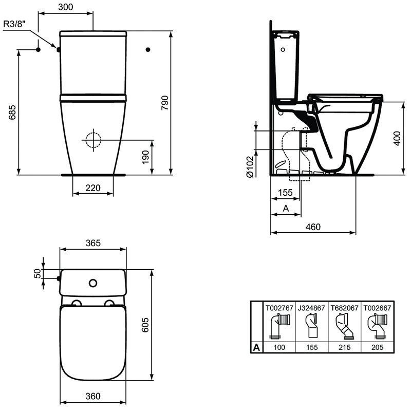 Ideal Standard i.life S Безободковый напольный пристенный унитаз с технологией RimLS+, для монтажа с бачком T473501, горизонтальный (универсальный) выпуск, глубокий смыв, сиденье и крышка T473601 или T473701 заказывается дополнительно, с крепежом TT0257919.