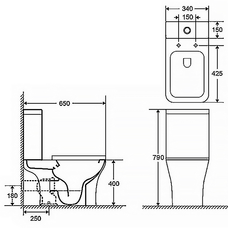 Унитаз напольный безободковый в комплекте с бачком и сиденьем микролифт. Размер 650x340x790 мм