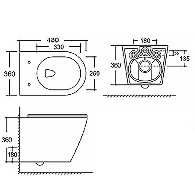 —Унитаз подвесной Azario Вэла 360х480х360 безободковый, система смыва "Торнадо", с быстросъемным сиденьем микролифт (AZ-2480)