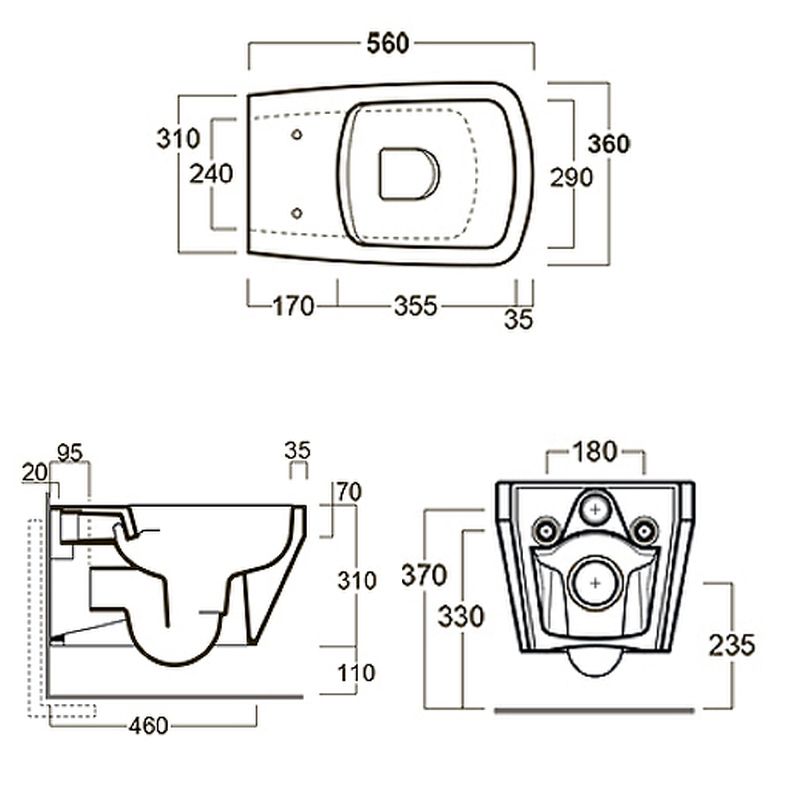—Унитаз подвесной Simas Baden Baden 360х560х310 безободковый, с креплением F85, цвет белый (BB18bi)
