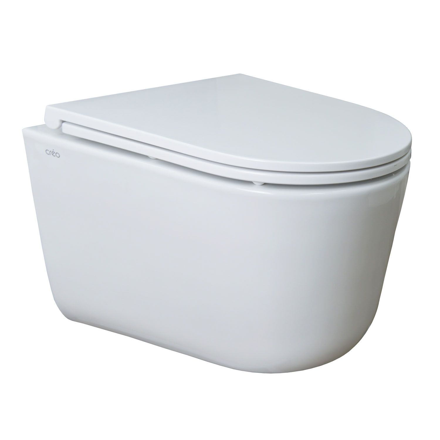 —Унитаз подвесной Creo Ceramique LYon 2.0 490х360х350 безободковый, с системой смыва Tornado в комплекте с быстросъемным сиденьем микролифт (LY1100R)