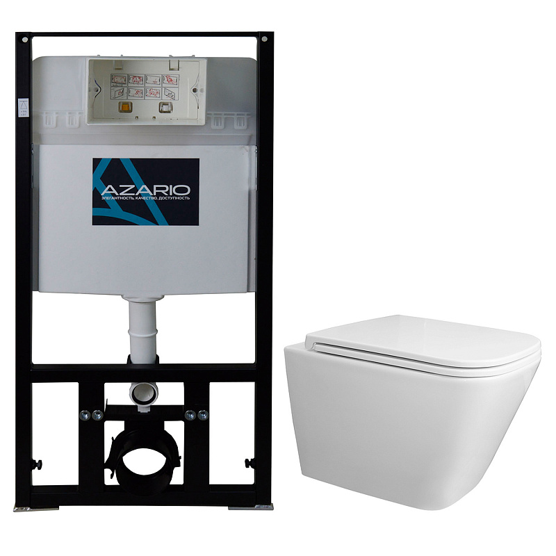 —Сет: Инсталляция для подвесного унитаза AZARIO 3/6л + унитаз Azario Teramo подвесной, безободковый, слив "Скрытое Торнадо", с сиденьем микролифт (AZ-8010-1000+AZ-0052-UQ3)
