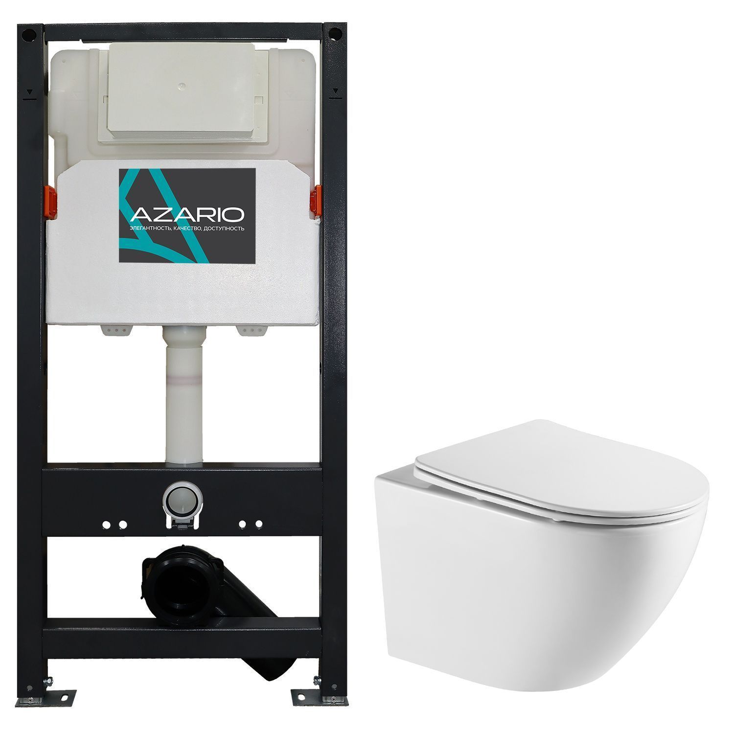 —Сет: Инсталляция для подвесного унитаза AZARIO NEW 3/6л + Унитаз подвесной Azario Grado безободковый, слив "Торнадо", сиденье микролифт (AZ-501A+AZ-0046-UQ1)