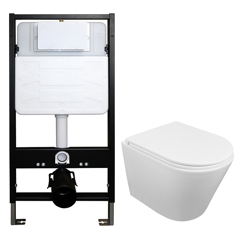 —Сет: Инсталляция для подвесного унитаза AZARIO FORTE 3/6л.+ подвесной унитаз Azario Teramo безободковый, смыв "скрытое торнадо", сиденье микролифт (AZ-100-100F+AZ-0053-UQ3)