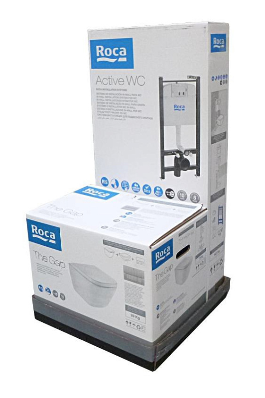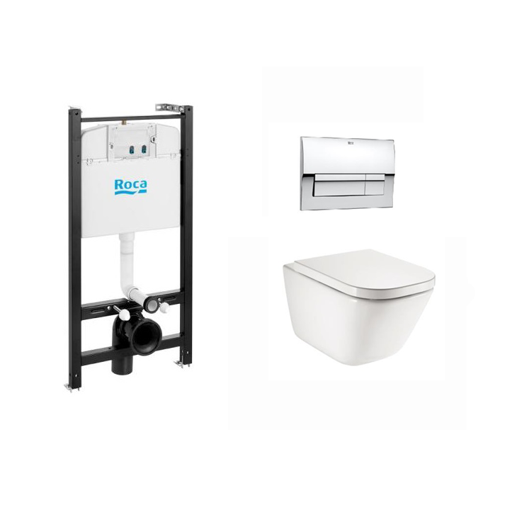 —ПЭК: подвесной безободковый унитаз Roca THE GAP, сиденье микролифт, инсталляция Roca Active, клавиша B01