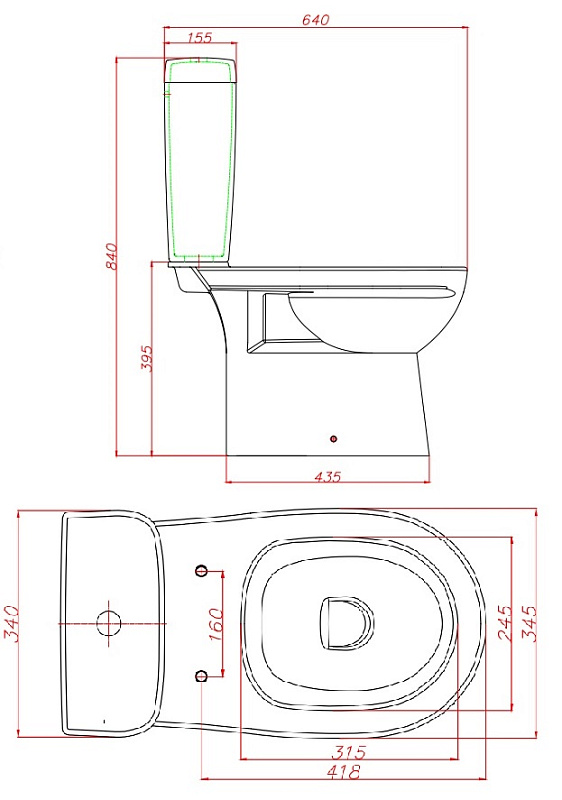 —Унитаз-компакт Керамин Альбано R 350х640х840 с жестким сиденьем, с двухрежимной спускной арматурой и угловым креплением (CS00087073)