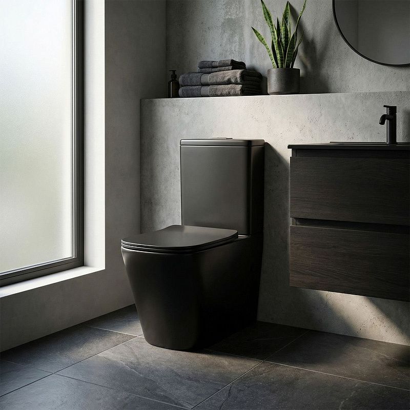 —Унитаз-компакт Azario Блэк Кинг 370х640х810 безободковый, с быстросъемным сиденьем микролифт, черный матовый (AZ-8303D)