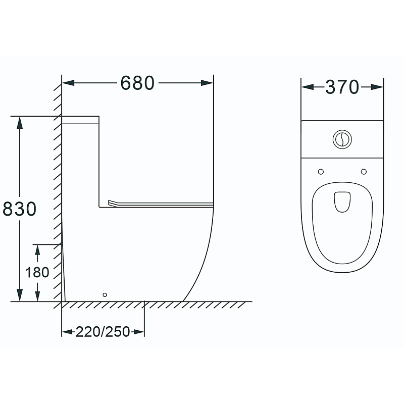 —Унитаз-моноблок AZARIO MORANO 680x370х830 напольный, безободковый в комплекте с сиденьем микролифт, черный матовый (AZ-1001MB)