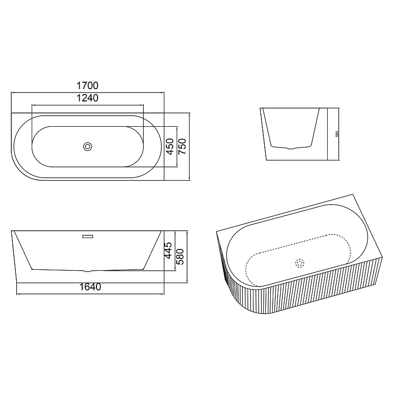 Простор и комфорт: Размер 1700х750х580 мм обеспечивает достаточное пространство для расслабляющего погружения и комфортного отдыха. Глубина 445 мм позволяет полностью погрузиться в теплую воду, снимая усталость после долгого дня.