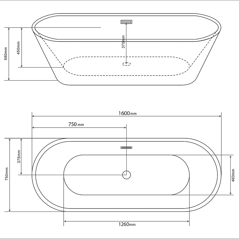 Оптимальные размеры: Габариты 1600х750х580 мм делают эту ванну идеальным выбором для большинства ванных комнат. Она обеспечивает достаточное пространство для комфортного погружения и расслабления, не занимая при этом излишнюю площадь.