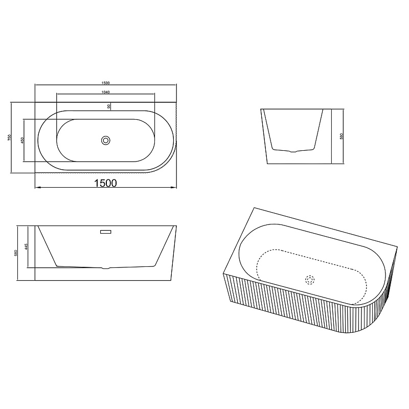 Рифленая внешняя поверхность: Уникальная рифленая текстура внешней поверхности не только придает ванне изысканный и современный вид, но и обеспечивает дополнительное сцепление, предотвращая скольжение и повышая безопасность.