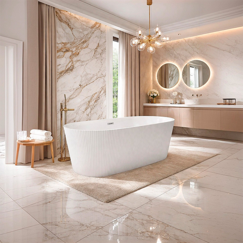 Ванна акриловая Azario ROUSE  — стильное и функциональное решение для вашей ванной комнаты. Отдельностоящая овальная ванна выполнена из высококачественного акрила, обеспечивающего долговечность, теплоизоляцию и комфорт при использовании. Рифленые внешние стенки придают изделию оригинальный современный дизайн.