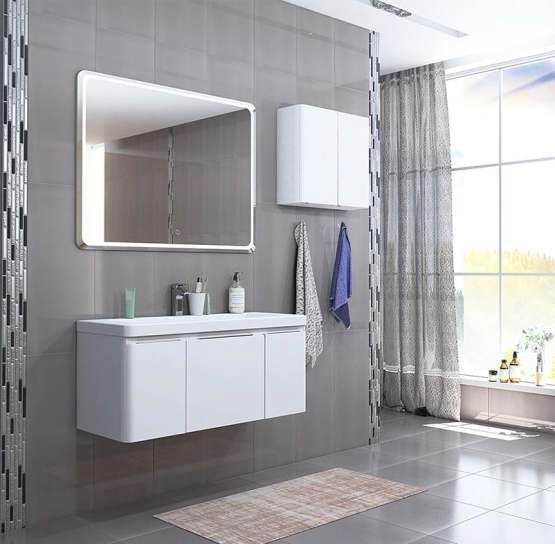 Скрытый touch-выключатель избавляет от необходимости прикасаться к нему мокрыми руками. Система подогрева зеркала ANTI-STEAM предотвратит его запотевание.
