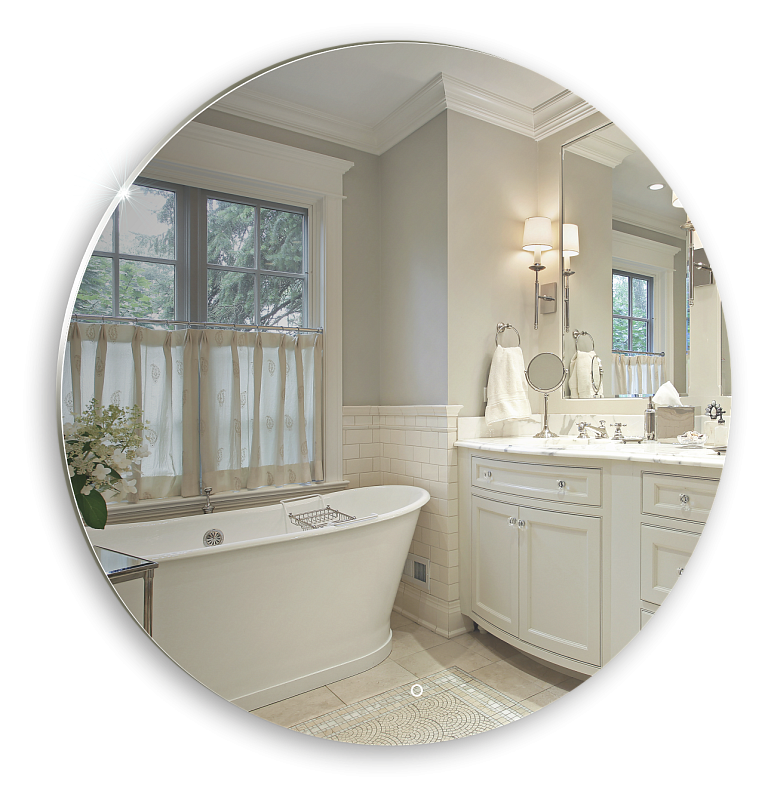 Зеркало идеальной круглой формы  из стекла высшего качества M0 (влагостойкое, минимальные оптические искажения). Простая геометрия смотрится изыскано благодаря светодиодной подсветке по периметру. Мягкий свет подсветки создает эффект парения и невесомости зеркала. LED-подсветка выдерживает до 50 тыс. часов работы в непрерывном режиме. Изделие оснащено сенсорным выключателем с функцией плавного диммирования, с запоминанием последнего значения. Короткие касания светящейся области включают/выключают подсветку, длительное касание меняет яркость свечения. Прочная обрешетка упаковки защитит зеркало от повреждений. Экологически чистый продукт выполненный по стандартам ЕС.